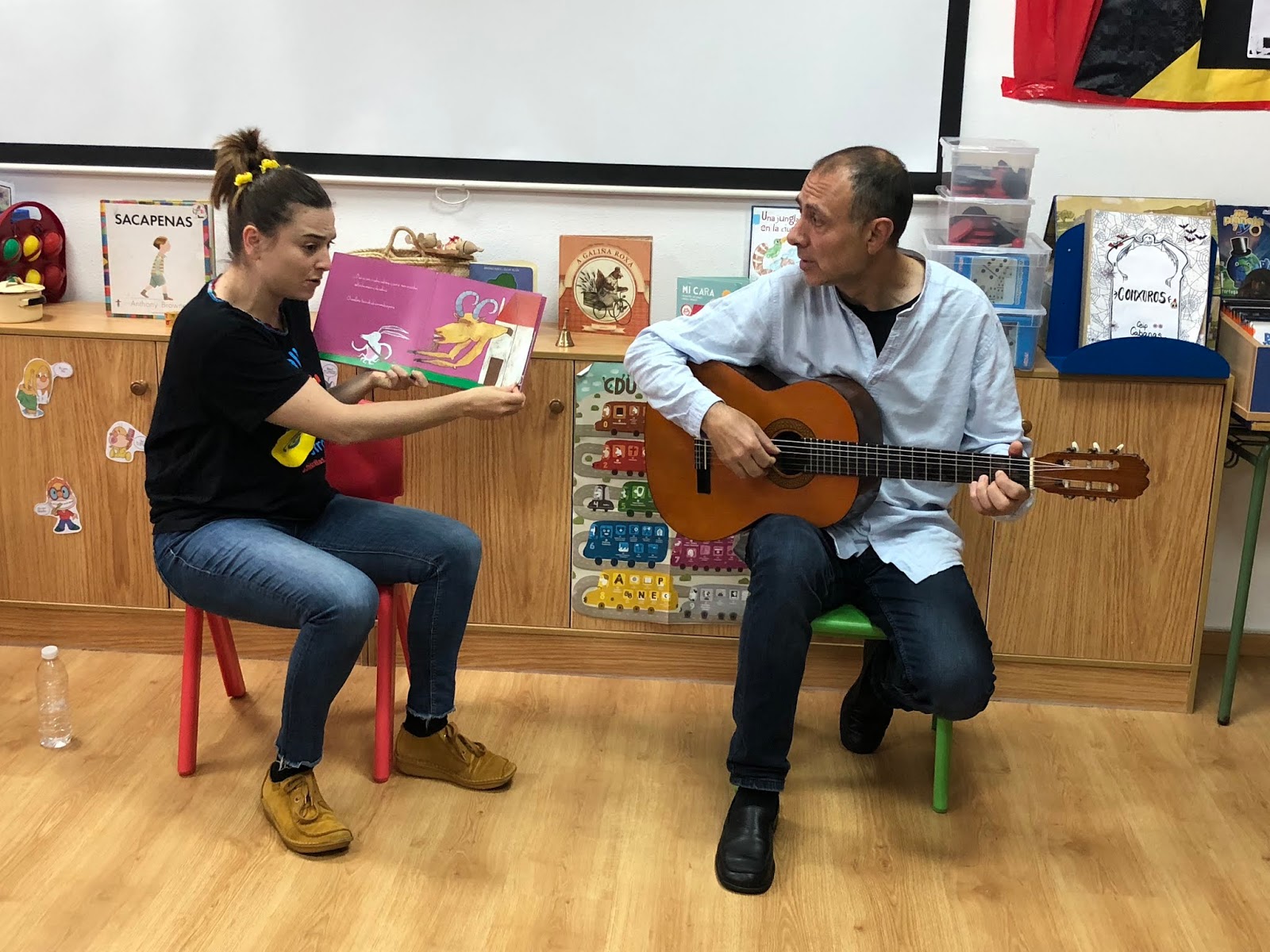 ONTE TIVEMOS NA BIBLIOTECA DO COLE A VISITA DE "MIGALLAS TEATRO" QUE NOS CONTOU UNHA CHEA DE CONTOS EN GALEGO, "CONTOS NAS ORELLAS", QUE NOS ENCANTARON. MANUEL COA GUITARRA, E BEA COA SÚA VOZ ENCADILARON OS NENOS E TAMÉN OS NON TAN NENOS... :)
